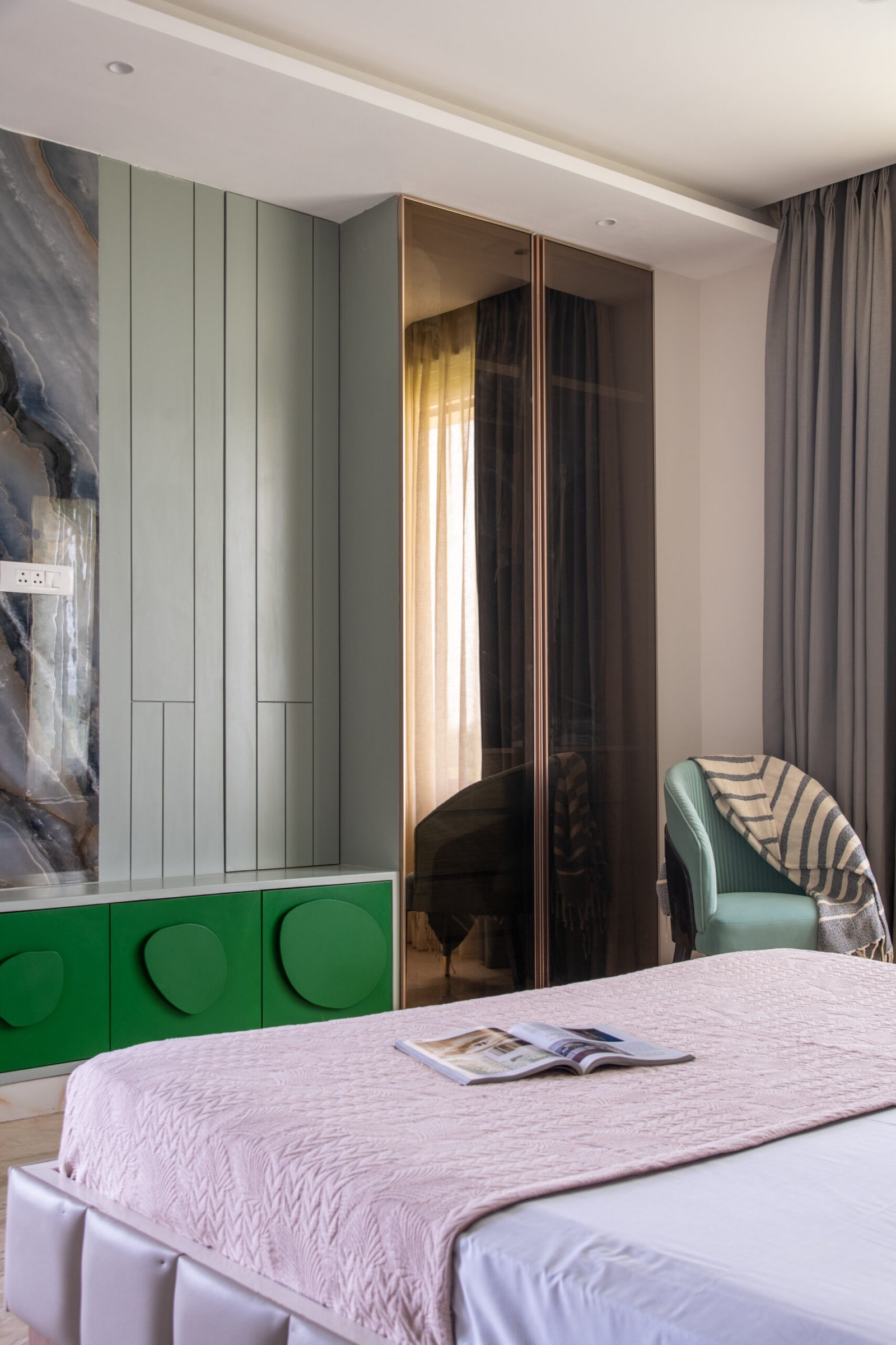 We began with the site itself—the treetop views and forest rhythm inspired the home’s connection to nature. Large openings and expansive windows were designed to frame greenery, while natural light was woven into every corner. The master bedroom extended this narrative with soothing green tones and an open, airy plan. Interiors were styled with restraint: sleek finishes provided a modern foundation, while heirloom furniture, vintage artworks, and curated accessories layered in heritage and warmth. Every decision balanced modernity with memory, minimalism with richness, creating a home that is as soulful as it is sophisticated.