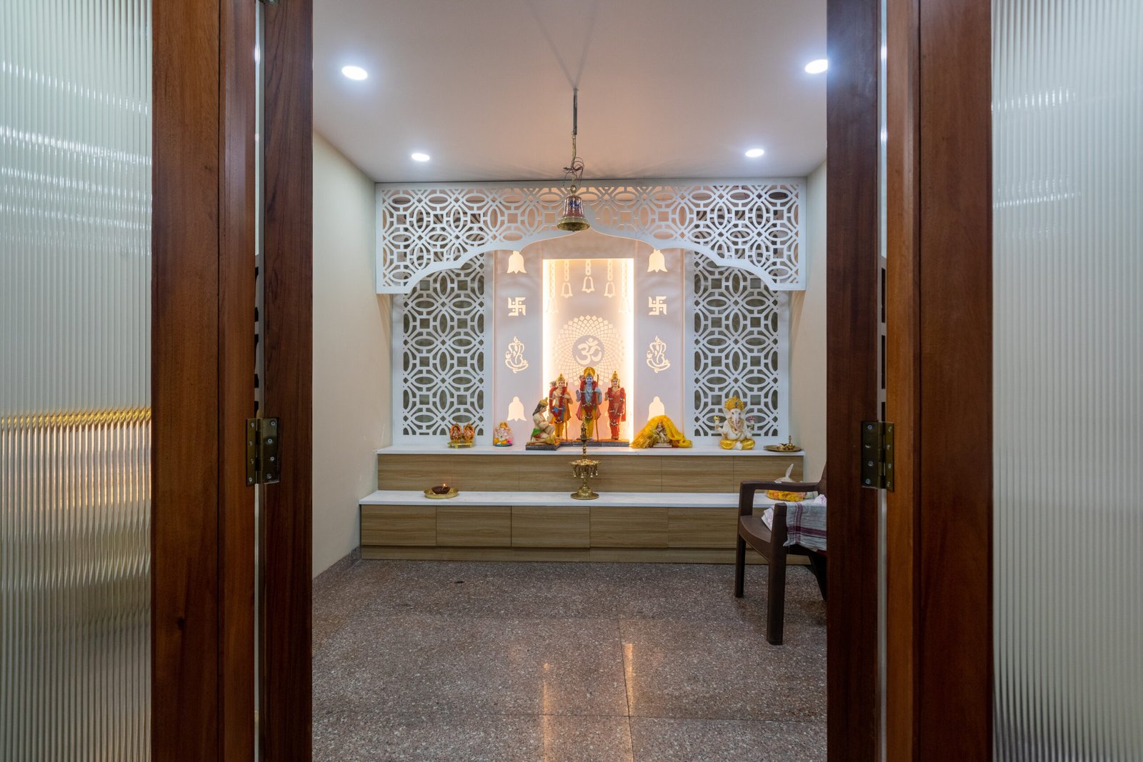 By blending traditional details like teak arches and Tanjore paintings with clean finishes and contemporary layouts, the design feels timeless yet fresh.