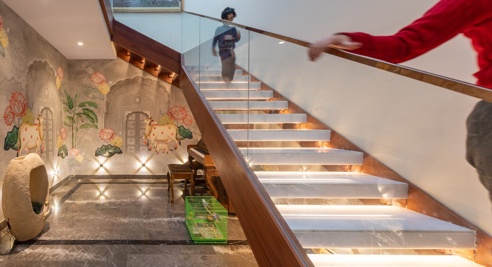 The design was inspired by the family’s Benares roots—infusing cultural heritage, Indian craftsmanship, and personal artistry into a modern home.